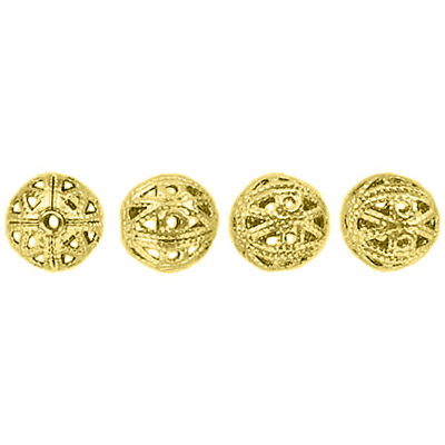 Billes en métal, 8mm, rond, filigrane, base de laiton, plaqué or. Vendu en paquet de 100. (SKU# MB4096/GL)