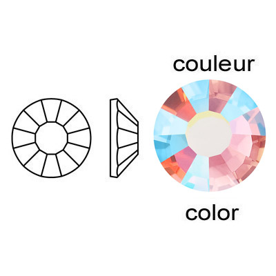 Chaton rose Preciosa, coupé à la machine, VIVA 12, cristal à dos plat, grandeur ss20, rose pâle AB. Vendu en paquet de 1440. (SKU# CRMV/SS20/516)