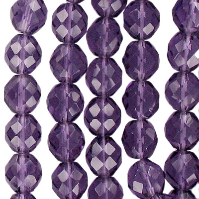 Billes de verre à facettes polies au feu, 8mm, neon magenta, corde de 7 pouces. Vendu en paquet de 5. (SKU# GBFP8MM/25125)