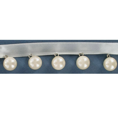 Frange, perles de 12 mm, ruban blanc. La commande minimum est de 1 metre. (SKU# SM355582)