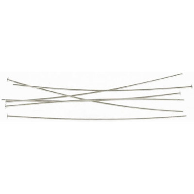 Broches avec tête, 75mm longueur, 0.8mm épaisseur de fil, plaqué couleur imitation rhodium. Vendu en paquet de 100. (SKU# HPT75MM/WH)