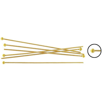 Broches avec boule, 50mm longueur, 0.8mm épaisseur de fil, plaqué couleur or. Vendu en paquet de 100. (SKU# HPT50MMB/GL)