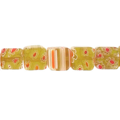 Billes de verre, cube, 10x10mm, millefiori yellow, corde de 16 pouces. Vendu en paquet de 1 corde(s). (SKU# GB10X10/MFYE)
