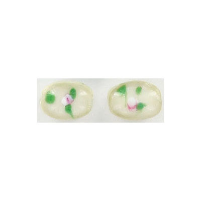 Billes de verre Inde, 9x11mm, ivory flower. Vendu en paquet de 100. (SKU# GBI9X11/Z40)