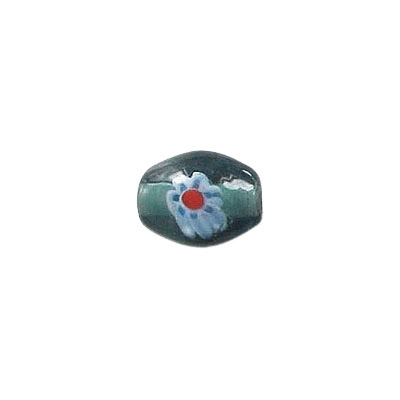 Billes de verre Inde, 9x11mm, ovale, montana/flower. Vendu en paquet de 100. (SKU# GBI9X11/GJW108)