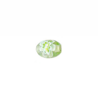 Billes de verre Inde, millefiori, 6x8mm, vert. Vendu en paquet de 100. (SKU# GBI6X8/CV709)