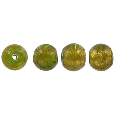 Billes de verre Inde, feuille d’argent, rond, 10mm, olive vert. Vendu en paquet de 100. (SKU# GBI10MM/GG52)