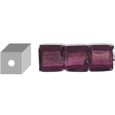 LIQUIDATION! Billes de verre, feuille d’argent, cube, 12mm, cordons de 8 pouces, améthyste. Vendu en paquet de 1 corde(s). (SKU# GB12C/SFAMET)