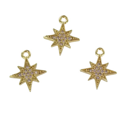 Pendentif en métal, 14x12mm, breloque étoile du Nord, base de laiton, pavé de cristal zircone cubique, plaqué d’or. Vendu en paquet de 6. (SKU# MP1704/101G)