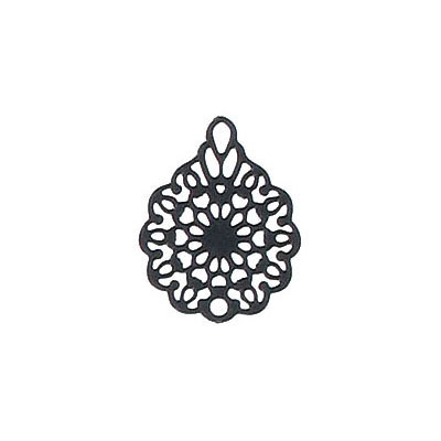 Pendentif en métal, 16x12mm, fleur filigrane, base de laiton, plaqué couleur noir. Vendu en paquet de 50. (SKU# MP1054/BLK)