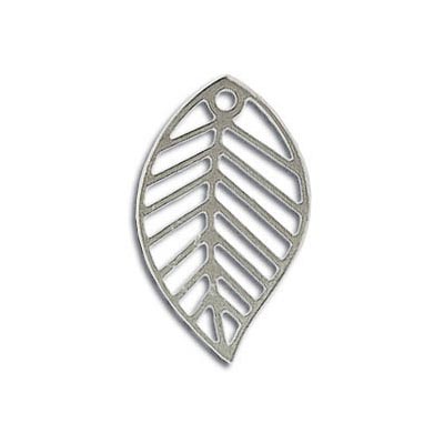 Pendentif en métal, breloque feuille, 13x22mm, nickel. Vendu en paquet de 100. (SKU# MP265/22/WH)