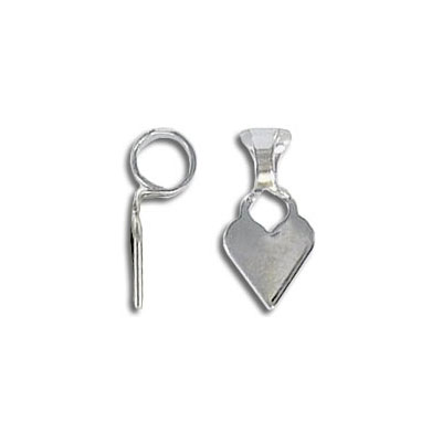 Pendentif en métal, porte-pendentif, 7x14mm cœur, imitation rhodium. Vendu en paquet de 100. (SKU# MP235NS/WH)