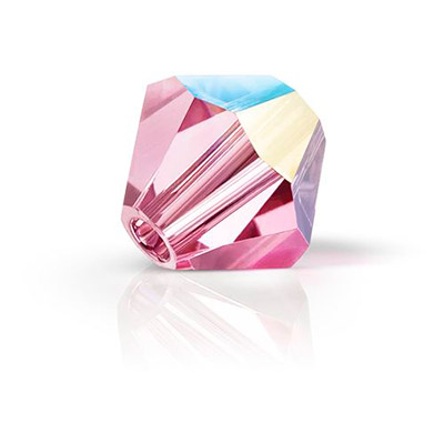 Billes de verre Preciosa coupées à la machine, 4x4mm, bicône, rose AB. Vendu en paquet de 144. (SKU# GBMC4X4/523)