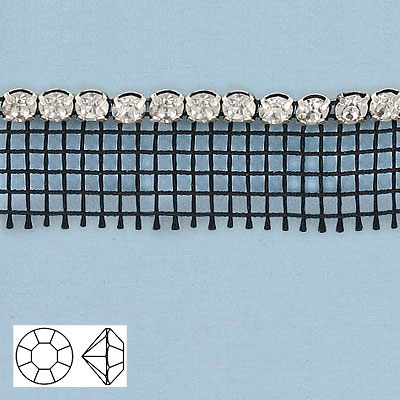 Galon pierres du Rhin, 1 rang, ss20, filet noir, 1 côté cristal, coupé à la machine. La commande minimum est de 1 metre. (SKU# RBM201B1N101)