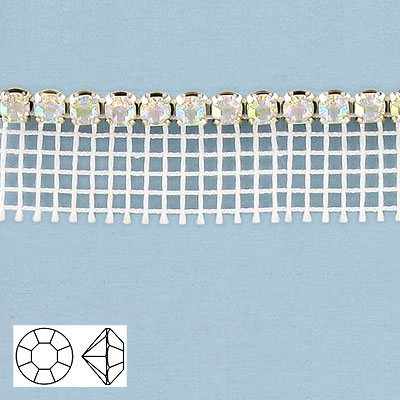 Ruban de crochet en pierre du Rhin cristal/blanc. La commande minimum est de 1 metre. (SKU# RET04A/022)