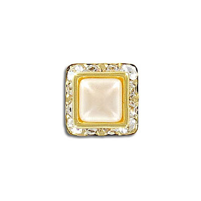 Rondelle, crystal, plaqué or, with 8x8mm pearl. Vendu en paquet de 12. (SKU# RR7028/101PG)