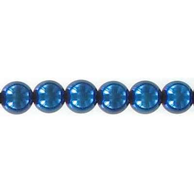 Billes semi-précieuses rondes, 6mm, hématite bleu, corde de 16 pouces. Vendu en paquet de 1 corde(s). (SKU# SPBD6MM/BLHEM)