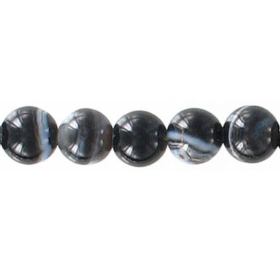 Billes semi-précieuses rondes, 8mm, agate noire avec des lines blanches, corde de 16 pouces. Vendu en paquet de 1 corde(s). (SKU# SPBD8MM/BKAG)