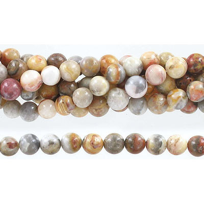 Billes semi-précieuses rondes, 8mm, agate “crazy lace”, grandeur de trou approx. 1-1.20mm, cordes de 16 pouces. Vendu en paquet de 1 corde(s). (SKU# SPBD8MM/CLAG)