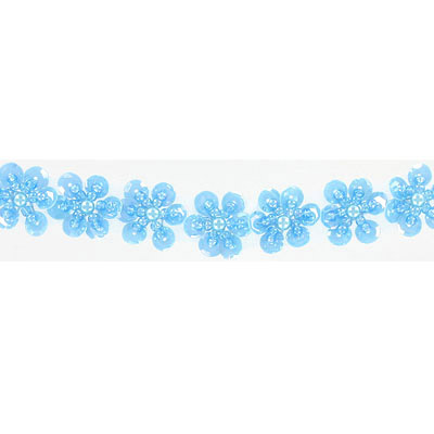 Appliques en paillettes et perles ab/aqua. La commande minimum est de 1 metre. (SKU# SMF830/ABAQ)