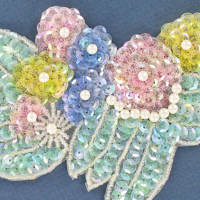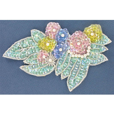 Appliques en paillettes, fleur avec feuilles, couleurs pastel, 17×10.5cm (6.5″x4.5″). Vendu separement. (SKU# SMTT31228/PMU)