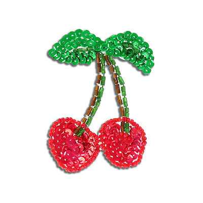 Appliques en paillettes, cerises, rouge et vert, 5×6.5cm (2″x2.5″). Vendu separement. (SKU# SM2702)