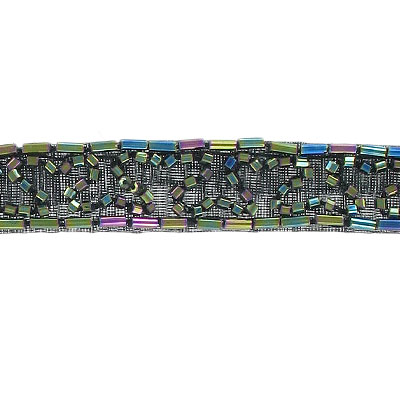 Banding bugle motif green iris (SKU# SM602/GRIR). Minimum order is 1 yard. quantity