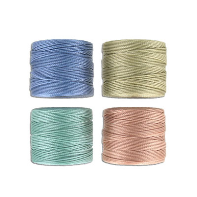 Beadsmith thread s-lon bead cord, 0.50mm, each spool: 70.4 metres (77 yards), light colors: Montana, turquoise, light copper, light khaki (4 spools/pkg). (SKU# TT/SLON/MIX3). Sold individually.