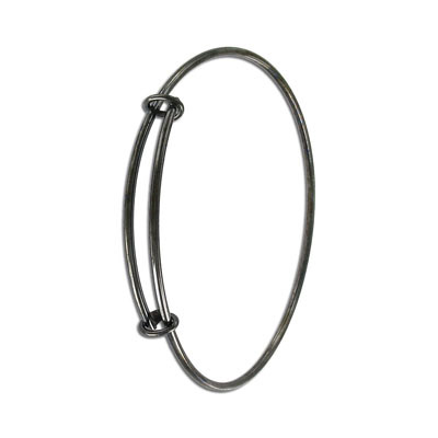 Bracelet, expandable, 2-loop, 70mm inside diameter, 1.8mm wire, black nickel finish, nickel free. Made in Europe. (SKU# BR125/BN). Sold per pack of 3