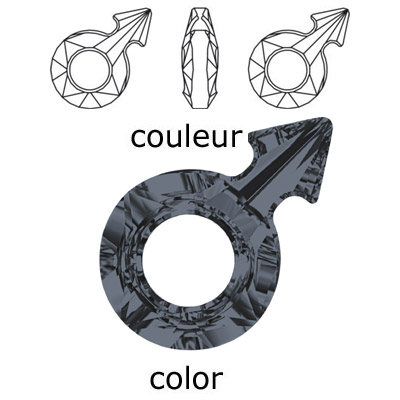 Crystal Swarovski 4878, Male Symbol Fancy Stone. Crystal Silver Night coating. 18mm size. (SKU# 4878/18MM/458) Sold per pack of 2