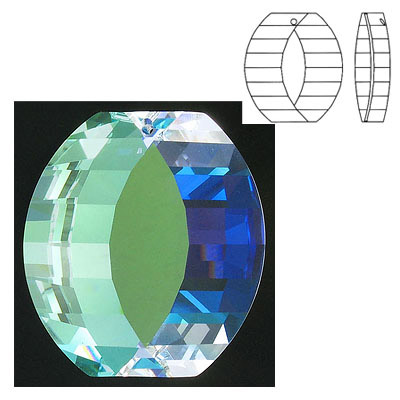Crystal Swarovski 8950/50×18, Twisted Faceted Drop Pendant-Chandelier. Blue AB Crystal coating. 50x18mm size. (SKU# 8950/50MM/301B) Sold per pack of 1