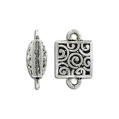 Filigree connector, 15mm, square, rhodium imitation. (SKU# CN12496/WH). Sold per pack of 12
