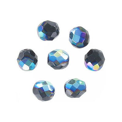 Fire polished Czech beads, AB jet, 6mm. (SKU# GBFP6MM/512). Sold per pack of 300
