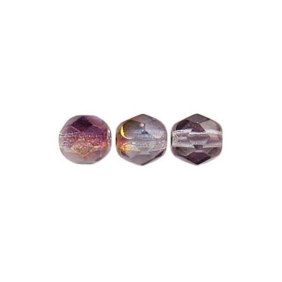 Fire polished Czech beads, crystal gold purple, 6mm. (SKU# GBFP6MM/91011). Sold per pack of 300