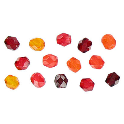 Fire polished Czech beads, mix red, 4mm. (SKU# GBFP4MM/99922). Sold per pack of 600