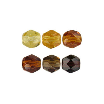 Fire polished Czech beads, mix topaz, 6mm. (SKU# GBFP6MM/99920). Sold per pack of 300