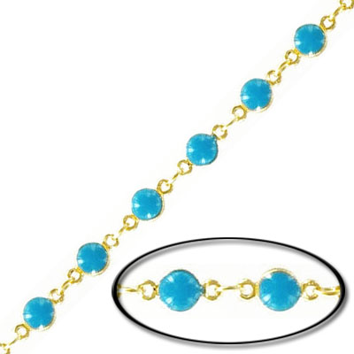 Link chain, with 4mm turquoise bead, gold plate, brass core. (SKU# CC/9376T/GL). Minimum order is 1 meter.