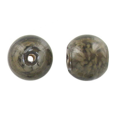 Glass bead India, 12mm, gray, pattern. (SKU# GBI12MM/BJ78). Sold per pack of 250 grams.
