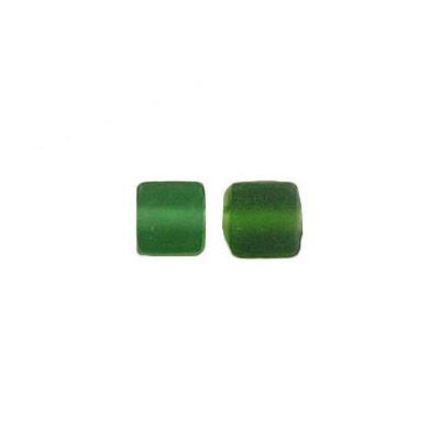 Glass bead India, frosted, cube dark green. (SKU# GBI692/M99). Sold per pack of 250 grams.