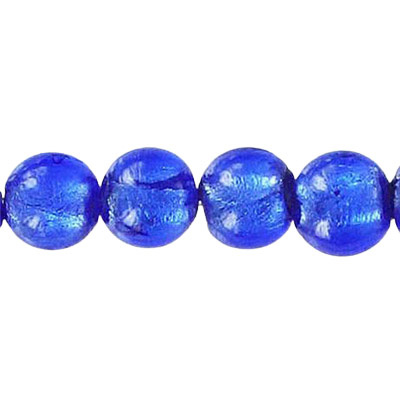 LIQUIDATION! Glass bead silver foil, round, 10mm, 8 inch strands, blue. (SKU# GB10MM/SFBL). Sold per pack of 1 strand(s).