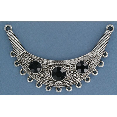 Metal pendant (connector), 90mm, 13 row with black stones, antique silver. (SKU# MP3842/BK/OXWH). Sold per pack of 6