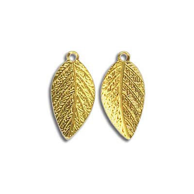 Metal pendant, leaf charm, 8x15mm, gold plate. (SKU# MP347/GL). Sold per pack of 100