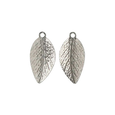Metal pendant, leaf charm, 8x15mm, nickel plate. (SKU# MP347/WH). Sold per pack of 100