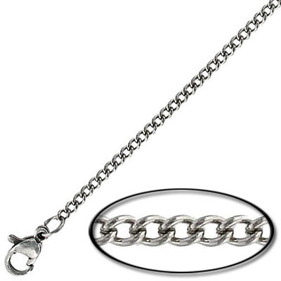 Neckchain, curb cut link, 0.6mm wire, 2.25×2.7mm link, stainless steel, 304 grade, 16 inch. (SKU# NC160F16/SS). Sold per pack of 12