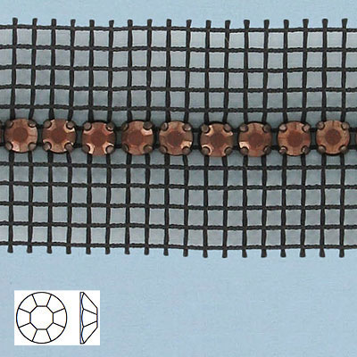 Rhinestone banding, 1-row black net 2-side machine cut copper flat (SKU# RBF201B2N093). Minimum order is 1 meter.