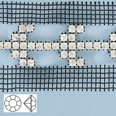 Rhinestone banding, arrow 2 side black net ss20 crystal brilliant (SKU# RBM933B2N101B). Minimum order is 1 meter.