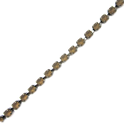 Rhinestone chain, pp24 size, matt smoked topaz, black nickel finish, made in Czech Republic. (SKU# RHCZ/P24/M226B). Minimum order is 1 meter.