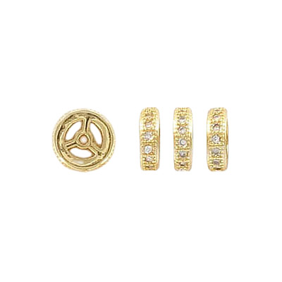 Rhinestone rondelle, 8mm, hole size approx. 1mm, brass core, pave with zircon, gold color. (SKU# RR/1808/GL). Sold per pack of 6