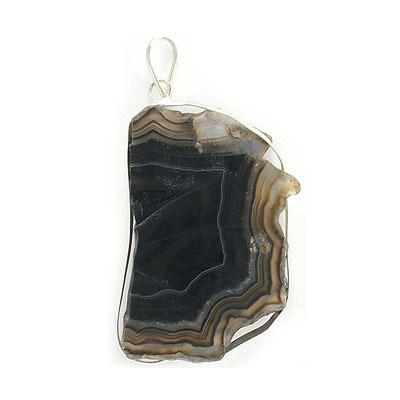 Semi-precious pendant, freeform slab, black agate. (SKU# SPPSLAB/BKAG). Sold individually.