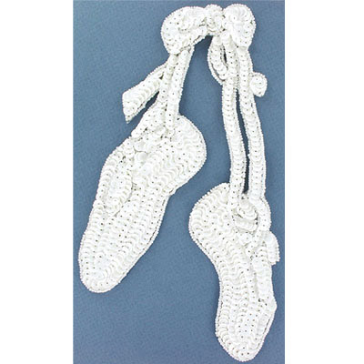 Sequin motifs, 12x23cm, 5″x9″, large ballet slippers, white iris (SKU# SMBH648/WHIR). Sold individually.